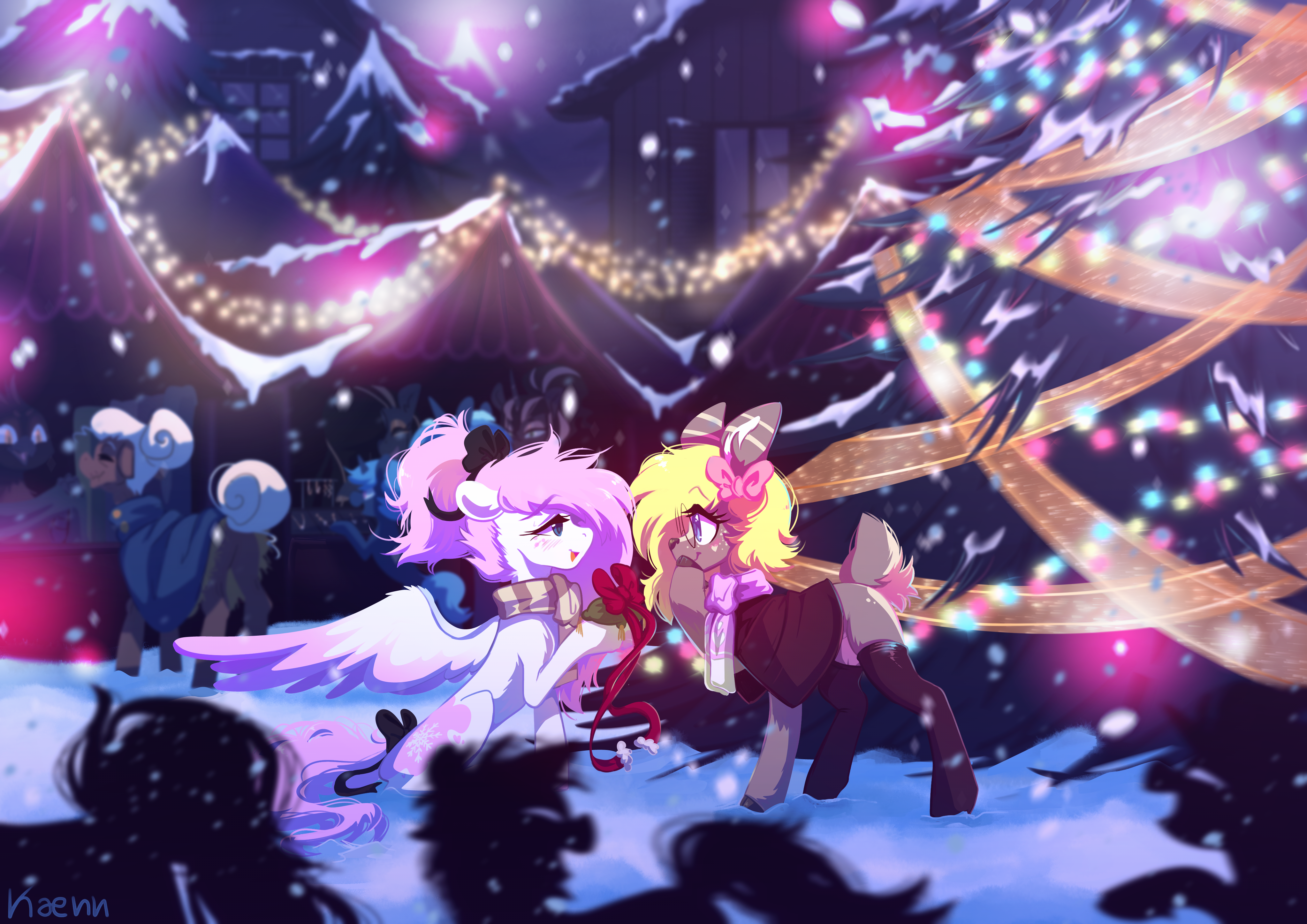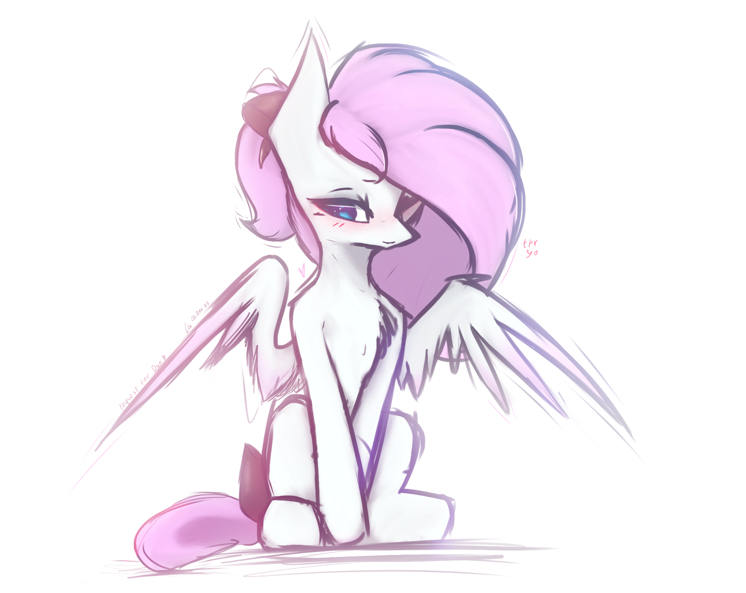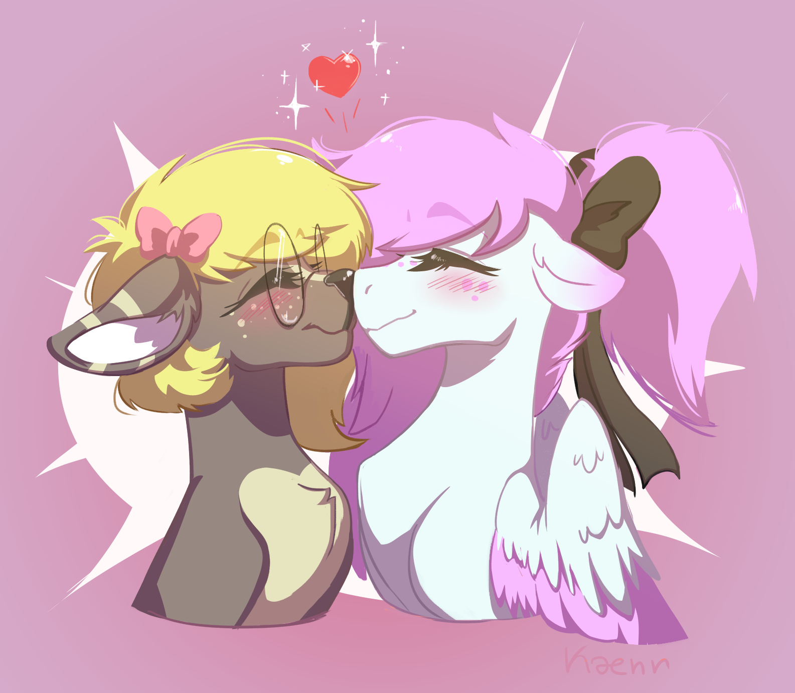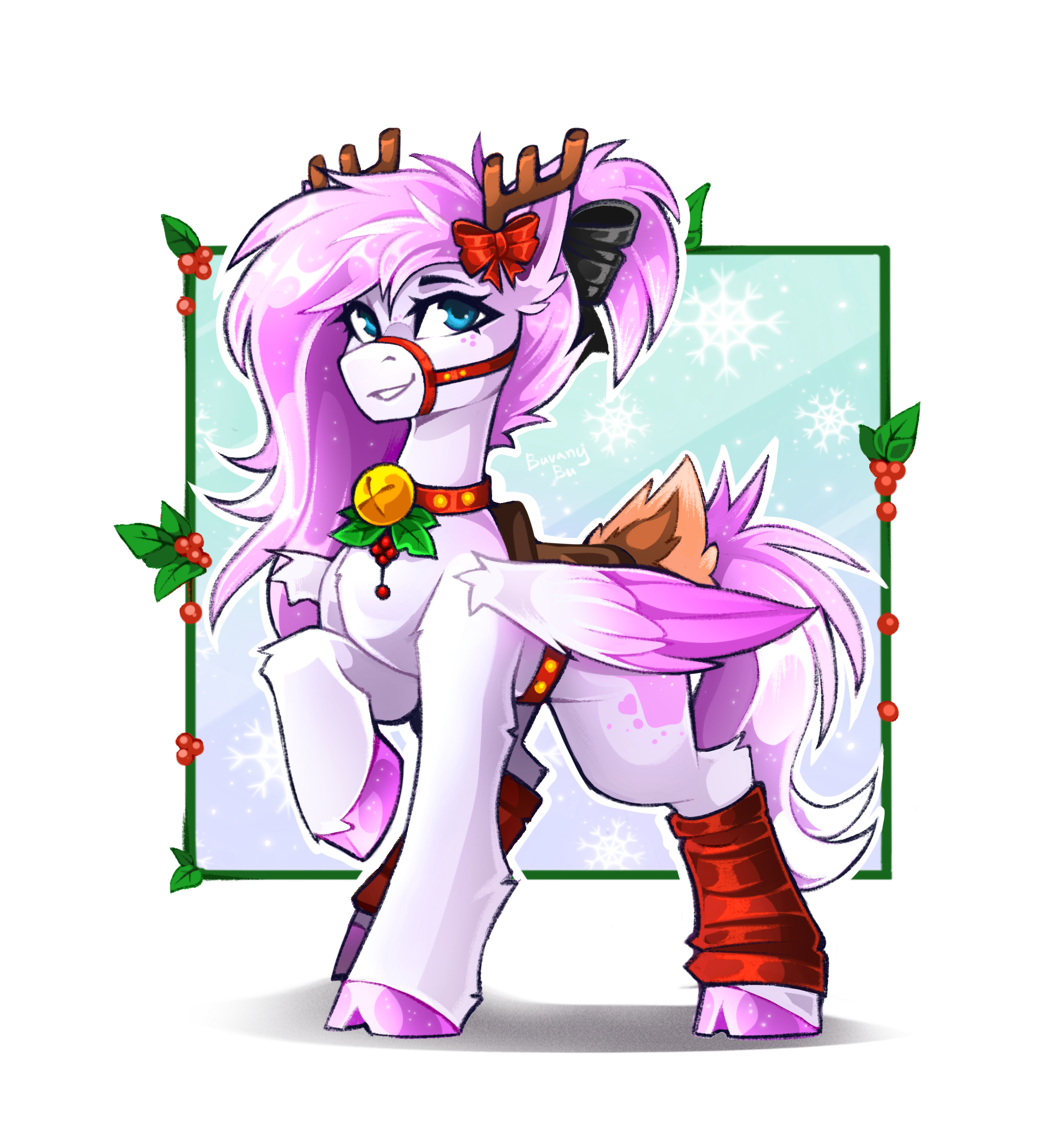 Frost Blush is a gentle winter pony with a heart as soft as snow and hair like cotton candy. She loves wandering through snowy forests with her loving girlfriend, bringing warmth and sparkle wherever she goes. Quiet and thoughtful, her soft pink mane and glowing white coat make her a truly magical presence.